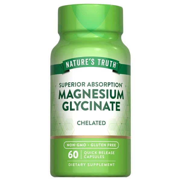Magnesium Glycinate is a highly absorbable form of magnesium, an essential mineral the body needs but cannot produce on its own.* While magnesium can be obtained through certain foods like whole grains and leafy greens, a high-quality supplement can help satisfy your daily requirement for this important mineral. Each serving of our quick release Magnesium capsules delivers 200 mg of this important mineral, as Magnesium Glycinate. Our formula provides superior absorption and is a sure-fire way to incorporate this essential mineral into your daily routine.* Additionally, our formula is non-GMO and free of gluten, wheat, yeast, milk, lactose, soy, artificial color, artificial flavor, artificial sweetener, and preservatives. Nature’s Truth vitamins and supplements was born out of a passion for healthy living and a dedication to sharing unique wellness solutions with the world. Over the years, Nature’s Truth has led the industry with new innovative products that contain trending ingredients consumers want and need. Discover Nature’s Truth – where your wellness journey begins. *Compared to Magnesium Oxide alone.