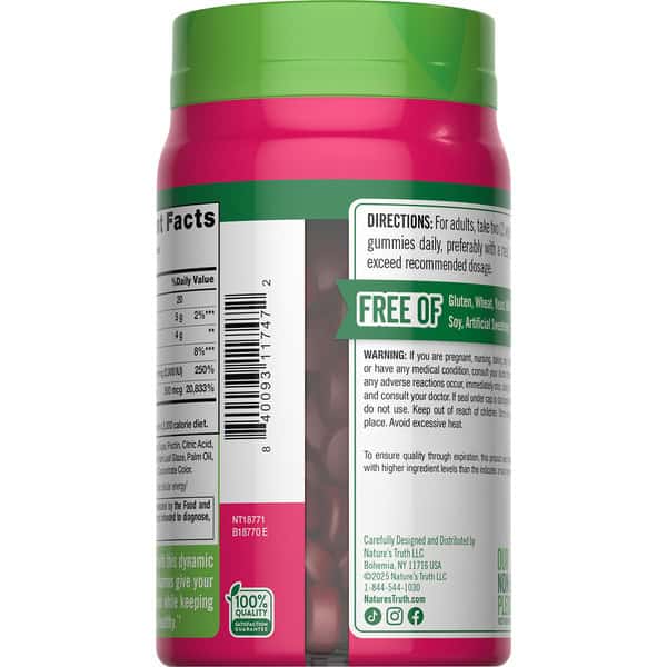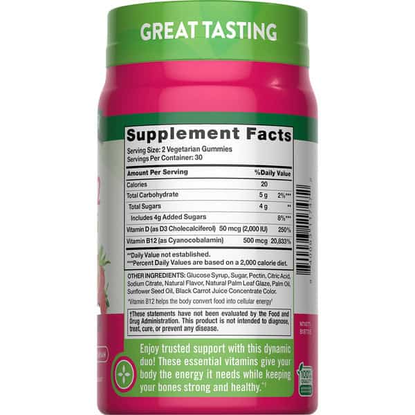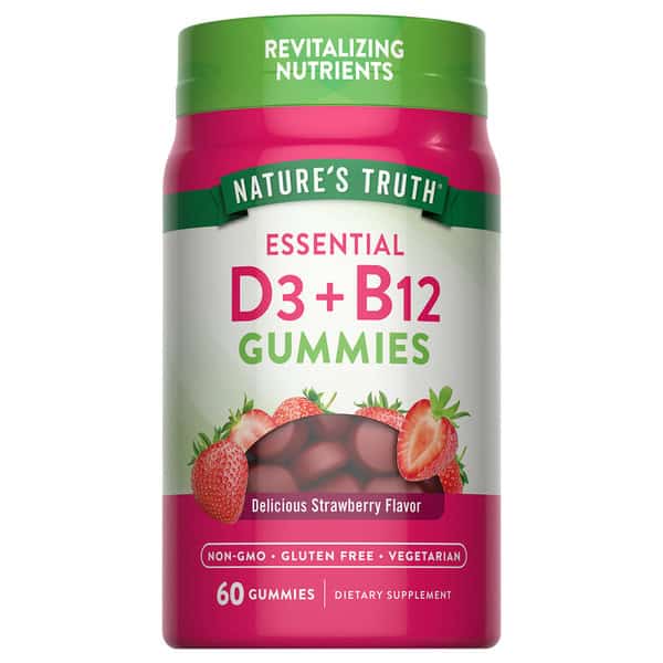 Vitamin D3 and Vitamin B12 are two essential vitamins that the body needs for a variety of functions. Vitamin D3 is known as the “sunshine vitamin” due to the body’s ability to produce it naturally after exposure to sunlight. Vitamin B12 can be found in food sources but it may be difficult to receive the recommended daily amount through diet alone. Many people turn to high-quality supplements to receive reliable support of both Vitamin D3 and B12. Receive two essential vitamins in one formula. Each serving of our D3 + B12 Gummies provide 50 mcg of Vitamin D (as D3 Cholecalciferol) and 500 mcg of Vitamin B12 (as Cyanocobalamin). These vegetarian gummies are a delicious strawberry flavor making them an absolute delight to take. Each serving also fulfills the daily recommended amount of both Vitamin D and Vitamin B12. Gummies are also a wonderful alternative for those who dislike or have trouble swallowing pills. Nature’s Truth vitamins and supplements was born out of a passion for healthy living and a dedication to sharing unique wellness solutions with the world. Over the years, Nature’s Truth has led the industry with new innovative products that contain trending ingredients consumers want and need. Discover Nature’s Truth – where your wellness journey begins.