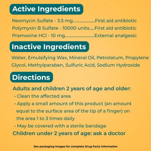 • Contains the antibiotics neomycin & polymyxin B to help prevent wound infection