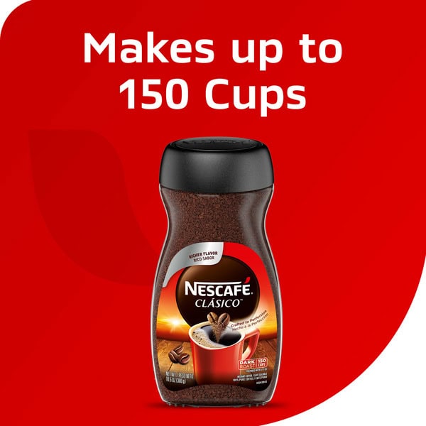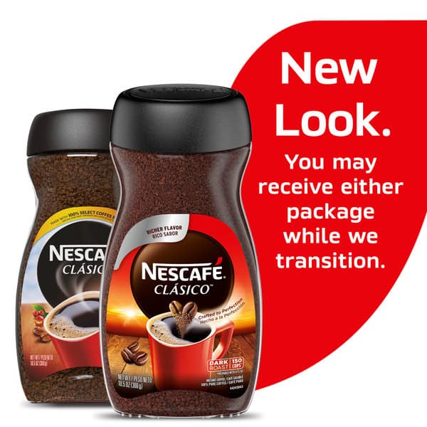 NESCAFÉ CLÁSICO Dark Roast Instant Coffee delivers rich, bold flavor to your cup in an instant with quality you can taste in every sip. This distinctive dark roast is crafted with 100% real coffee. We use only the finest-quality, respectfully grown robusta and arabica coffee beans and roast them separately to capture a unique flavor and aroma for you to enjoy. Discover a bolder, richer flavor in this remarkably unique instant coffee you can make anytime the moment is right. So whether you like your coffee black or prefer to personalize it by adding milk, cream, syrup or sugar, NESCAFÉ lets you discover a rich and remarkably unique coffee in an instant. Savor an irresistible cup of coffee instantly with the world’s best-selling coffee brand,* NESCAFÉ.