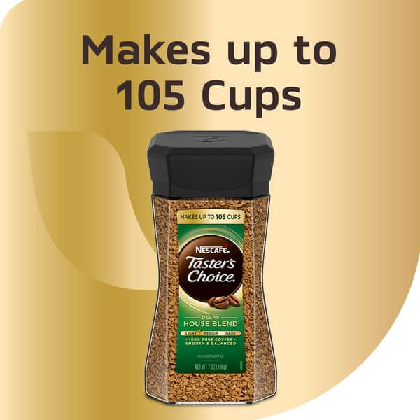 • PREMIUM COFFEE—Savor smooth, well-balanced flavor in an instant with the pure coffee taste of NESCAFÉ Taster’s Choice Decaf House Blend Light Medium Roast Instant Coffee