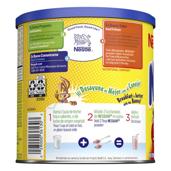 1. Pour 1 cup of cold or hot, or plant-based milk. 2. Add 2 Tbsp Nesquik powder. 3. Stir & enjoy!