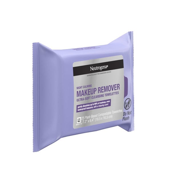 Gently remove makeup & cleanse the day away with Neutrogena Makeup Remover Night Calming Cleansing Face Wipes with a relaxing scent. The nighttime facial cleansing towelettes gently dissolve up to 99% of makeup, even waterproof mascara. Plus, these face wipes lift away oil, dirt, sunscreen & pollution while the relaxing scent calms you before bed. The patented cleansing technology of these pre-moistened facial cleansing towelettes with a triple emollient blend melts away makeup & leaves skin refreshingly clean with no heavy residue. Ophthalmologist and dermatologist tested, these hypoallergenic cleansing cloths are formulated without parabens, alcohol, sulfates, phthalates, soaps & dyes & are gentle enough even for the delicate eye area.