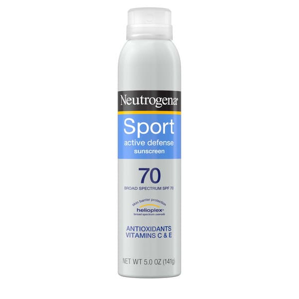 Protect from harmful UVA/UVB rays even during active outdoor activities with Neutrogena Sport Active Defense Sunscreen Spray. Made to refresh and protect those with active lifestyles, this broad spectrum SPF 70 water resistant sunscreen from a dermatologist-recommended brand is non-sticky, quick-drying, and formulated with antioxidant multi-vitamins C & E to care for skin. The sport sunscreen spray is water resistant for up to 80 minutes and has a refreshing mint fragrance to keep you feeling fresh and cool even through sweat. For best results, apply the sunscreen mist 15 minutes prior to sun exposure, and then reapply after 80 minutes of swimming or sweating, immediately after towel drying, and at least every two hours.
