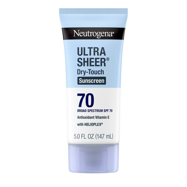 Neutrogena Ultra Sheer Sunscreen, Dry-Touch, with SPF 70, broad spectrum sunscreen provides powerful sun protection that you will love to wear without the heavy finish. Featuring Avobenzone, Homosalate, Octisalate, Octocrylene as active ingredients, this non-greasy body sunscreen is oxybenzone-free, Hawaii Act 104 compliant. With Helioplex technology to provide superior UVA/UVB protection from aging UVA rays and burning UVB rays. Enriched with antioxidant vitamin E, the lightweight SPF sun screen lotion with Dry-Touch technology absorbs fast for a clean, ultra-light feel and non-shiny finish. Sunscreen lotion formula is non-comedogenic and PABA-free. This Neutrogena sunscreen is water-resistant for up to 80 minutes and comes from a dermatologist recommended sun care brand. Apply prior to sun exposure to keep skin protected during outdoor activities like gardening, biking, hiking, boating or walking. Protect yourself as you get your daily dose of sunshine.
