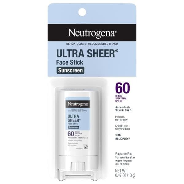 • Neutrogena Ultra Sheer SPF 60 Face Sunscreen Stick for mess-free sun protection on-the-go