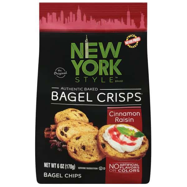 All the flavor of a cinnamon raisin New York bagel in every crispy bite. Light and crunchy but bursting with flavor, these bagel crisps are highly versatile. Pair with cream cheese for a classic snack, top with fresh apple slices for a healthy, hearty breakfast, drizzle with honey for a burst of crunchy sweetness, or eat straight out of the bag for an on-the-go snack that can’t be beat.