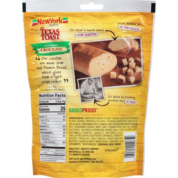 Big flavor. Light, crispy crunch. Our bread is hearth baked, from scratch. Twice seasoned for 2x the flavor. Our passion for breadmaking stretches back 90 years. Our croutons are made from real French Bread, which gives them a light crispy crunch – Don Penn (3rd Generation NYB Baker). Baked proud.