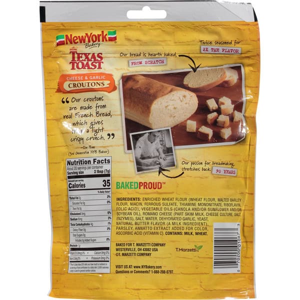 The original. Big flavor. Light, crispy crunch. Twice seasoned for 2x the flavor. Our bread is hearth baked, from scratch. Our passion for beadmaking stretches back 90 years. Our croutons are made from real French bread, which gives them a light crispy crunch. – Don Penn (3rd Generation NYB Baker).