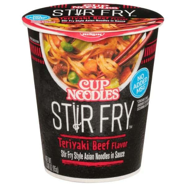 It’s not soup, it’s Stir Fry! Microwaveable, takeout-style Asian meals ready in minutes. Cup Noodles® Stir Fryâ„¢ Teriyaki Beef is stir fry style noodles and high-quality vegetables like green beans and cabbage, tossed in delicious, authentic flavored sauce, all with no added MSG or artificial flavors. Now you can take your favorite Asian dishes on the go in the cup you adore—from the noodle experts you know and love.