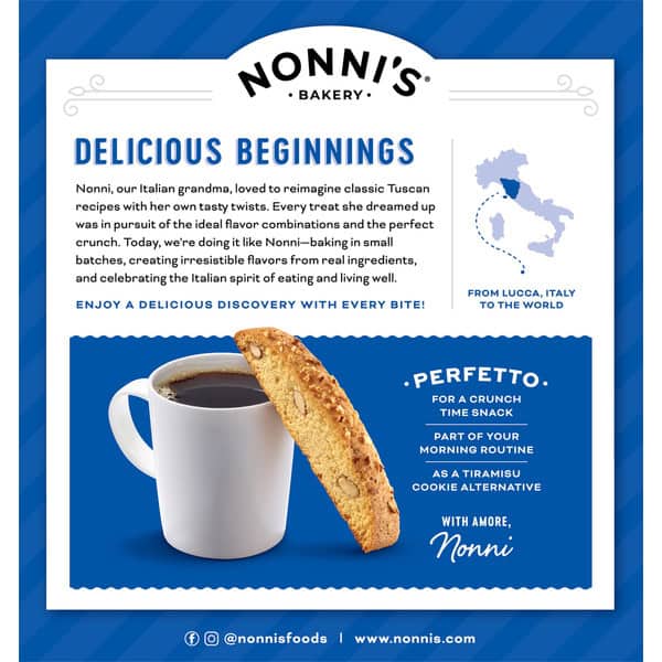 For a crunch time snack. Part of your morning routine. As a tiramisu cookie alternative with amore, Nonni.