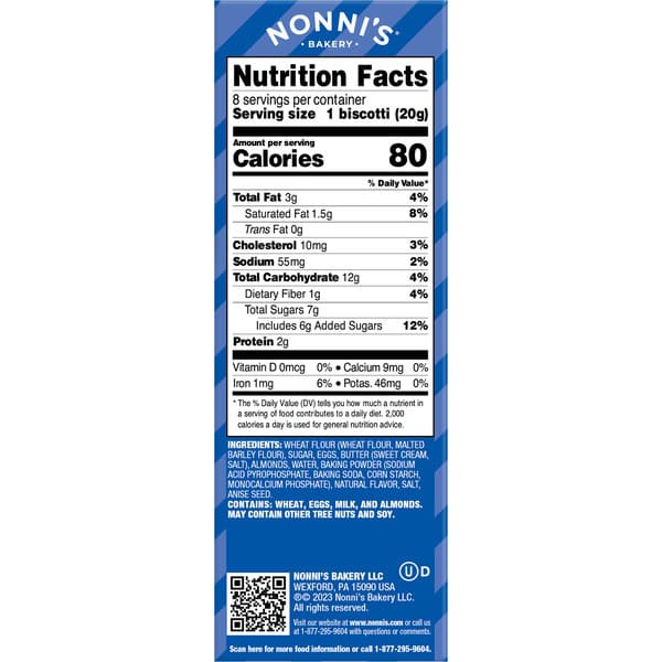 Wheat Flour (wheat Flour, Malted Barley Flour), Sugar, Eggs, Salted Butter (sweet Cream, Salt), Almonds, Baking Powder (sodium Acid Pyrophosphate, Baking Soda, Corn Starch, Monocalcium Phosphate), Natural Flavors, Salt, Anise Seed