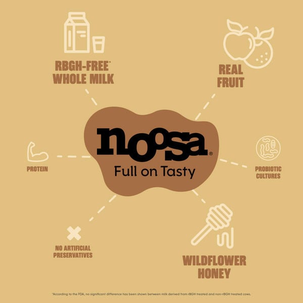 Call it amazing or out-of-this-world, but whatever you do, don’t call it plain. Because we add a generous amount of real Madagascar vanilla beans to our rich, velvety yoghurt you can taste and see in every spoonful. Simply put, it’s van-tastic. Our vanilla bean yoghurt is infused with a touch of pure wildflower honey for a unique, lightly sweetened, totally awesome taste. Try it and it will make you a bee-liever. Vanilla bean noosa yogurt is made with rBGH Free*, Grade A whole milk from happy Colorado cows. Vanilla bean noosa is yum on a spoon, offering a thick, creamy yoghurt leaving you satisfied with rich texture, amazing flavor and the right amount of sweetness! Indulge in a tub of vanilla bean noosa whole milk yogurt as is, or add in your favorite fresh fruit or other fab toppings. Any way you scoop it, it is magical! Vanilla bean noosa yogurt 4oz tub is not only packed with tons of flavor but also 5g of protein – perfection in every tub. noosa probiotic yogurt is , gluten free, made with live and active cultures and of course contains no artificial preservatives. Grab a spoon and try it for yourself – tasting is believing. *according to the FDA, no significant difference has been shown between milk derived from rBGH treated and non-rBGH treated cows
