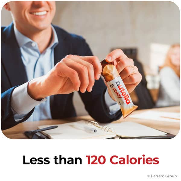 Introducing Nutella B-ready, a ready-to-enjoy Nutella experience that’s individually wrapped and less than 120 calories! Nutella B-ready is the most convenient way to enjoy the unique taste of Nutella in a multitexture combination: a delicious, crunchy wafer shell filled with creamy Nutella and puffed wheat crisps. Nutella B-ready is your new breakfast bar, break-time snack or delicious anytime treat. Wherever you are, Nutella B-ready is the snack bar that helps you get along the day with a smile