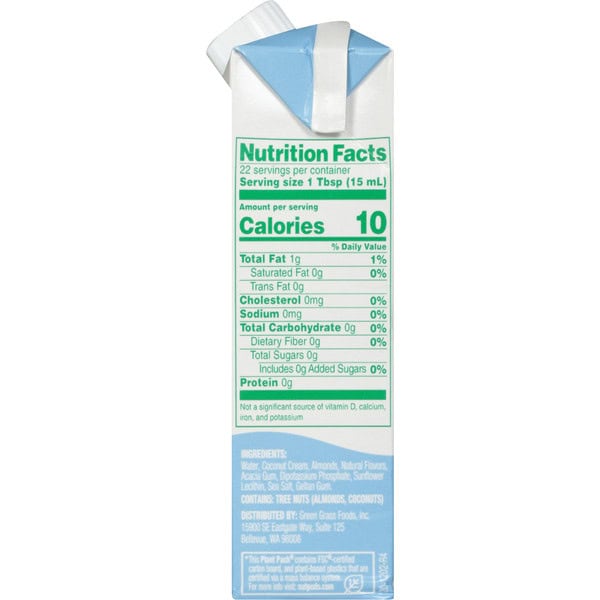 Ingredients: Purified Water, Coconut Cream, Almonds, Natural Flavors, Acacia Gum, Dipotassium Phosphate, Sunflower Lecithin, Sea Salt, Gellan Gum.