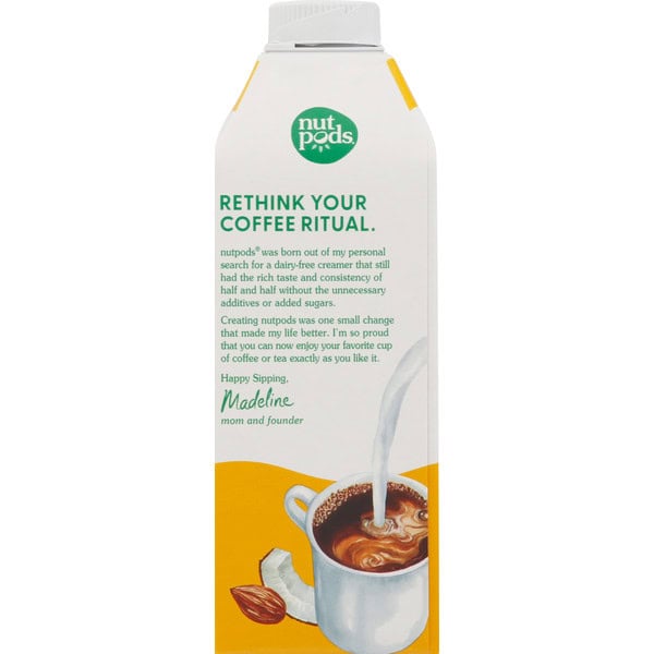 Rethink your coffee ritual. Nutpods was born out of my personal seach for a dairy-free creamer that still had the rich taste and consistency of half and half without the unnecessary additives or added sugars. Creating Nutpods was one small change that made my life better. I’m so proud that you can now enjoy your favorite cup of coffee or tea exactly as you like it. Happy Sipping, Madeline – mom and founder. Plant-based. Unsweetened. Carrageenan-free. Smooth. Balanced. Delicious. Please recycle. FSC: Mix – Board.