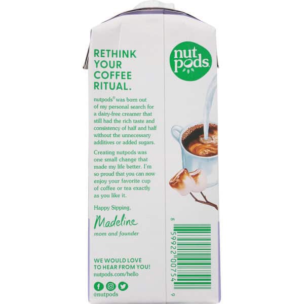 Water, Coconut Cream, Almonds, Natural Flavors, Acacia Gum, Dipotassium Phosphate, Sunflower Lecithin, Sea Salt, Gellan Gum