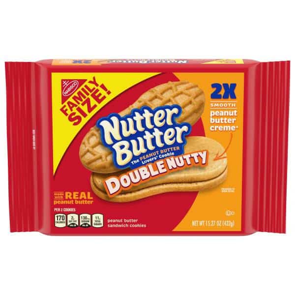 • One 15.27 oz. family size pack of Nutter Butter Double Nutty Peanut Butter Sandwich Cookies.