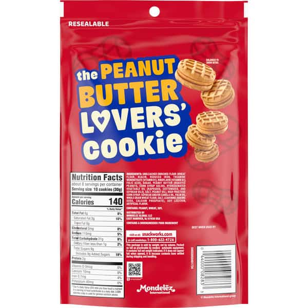 • Sweet and savory peanut butter cookies with a crunchy texture and a smooth, creamy filling made with real peanut butter between two crispy cookies.