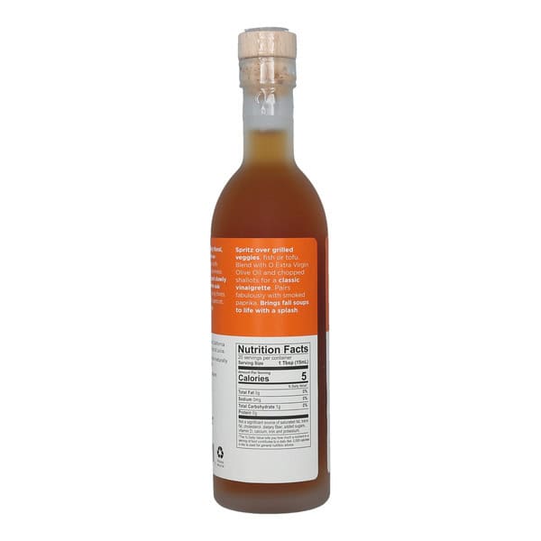 Spritz over grilled: veggies, fish or tofu. Blend with o extra virgin olive oil and chopped shallots for a classic vinaigrette. Pairs fabulously with smoked paprika. Bring fall soups to life with a splash.