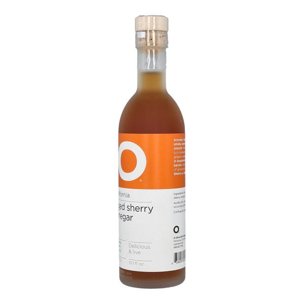O vinegars are made with premium local wines, using centuries-old methods. This Aged Sherry Vinegar is crafted from sun-ripened palomino grapes and aged slowly in toasted white oak barrels. The resulting vinegar is aromatic, lightly floral, smoky, and smooth, with hints of apricot and almond. Drizzle over grilled veggies, fish or tofu, or blend with O Extra Virgin Olive Oil and chopped shallots for a smooth spin on a classic vinaigrette.