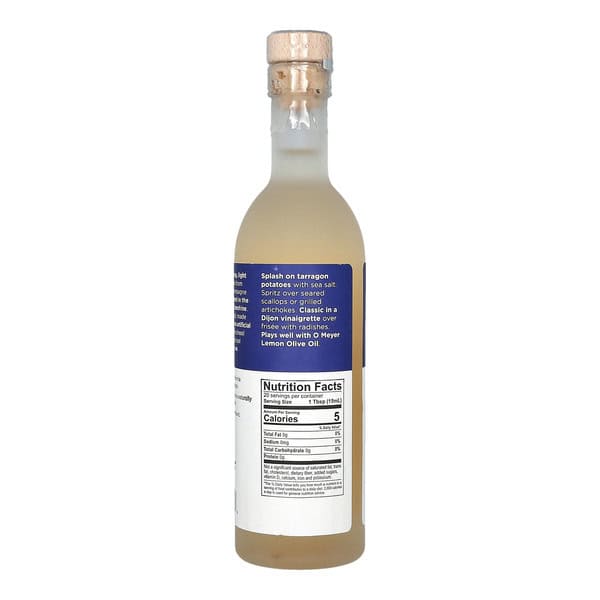 O vinegars are made with premium local wines, using centuries-old methods. Crafted from California champagne grapes nurtured in the cool coastal sunshine, this Champagne Vinegar is crisp, light and dry, with floral aromas and a delicate finish. Perfect in a classic Dijon vinaigrette, this award-winning vinegar is equally delicious in potato salad, or drizzled over seared scallops or grilled artichokes.