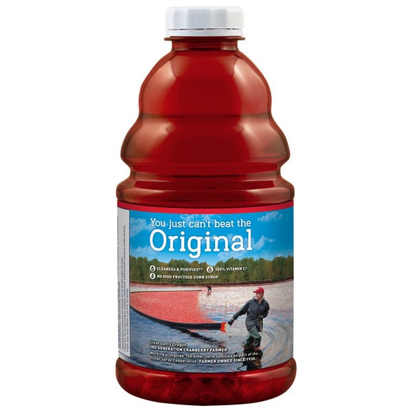Crisp. Clean. Straight from the bog. Experience the insane deliciousness of Ocean Spray® Cranberry Juice Cocktail. The trailblazing juice drink made with bold cranberry fruit juice concentrate. This fruit juice beverage packs 100% of your recommended daily value of vitamin C in a single serving. No high fructose corn syrup. This beverage has only the good stuff. Use this cranberry juice drink as a cocktail mixer for radically refreshing drinks. Serve it over ice with a splash of vodka for a tangy cranberry cocktail. Or change up dinner with some cranberry drunken chicken or cranberry cocktail meatballs. Original Cranberry makes a delicious, unique addition to blended beverages and ice pops, too. Get creative. Go bog-wild. All this made possible by the 700+ cranberry farming families that make up our co-op. Our owners. Our heartbeat. Our inspiration. Ocean Spray believes in the power of the mighty cranberry; Born Tart. Raised Bold.™