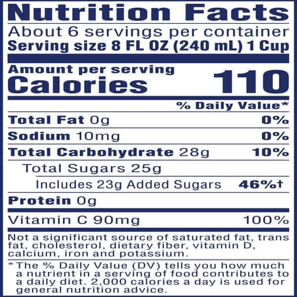 Filtered Water, Cranberry Juice From Concentrate, Cane Or Beet Sugar, Ascorbic Acid (vitamin C), Vegetable Concentrate For Color