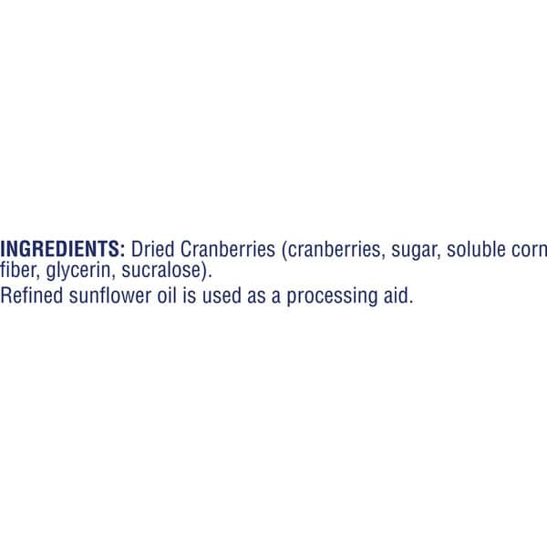 Cranberries, Soluble Corn Fiber, Cane Sugar, Glycerin, Sucralose