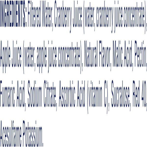 Filtered Water, Cranberry Juice (water, Cranberry Juice Concentrate), Apple Juice (water, Apple Juice Concentrate), Natural Flavor, Malic Acid, Pectin, Fumaric Acid, Sodium Citrate, Ascorbic Acid (vitamin C), Sucralose, Red 40, Acesulfame Potassium