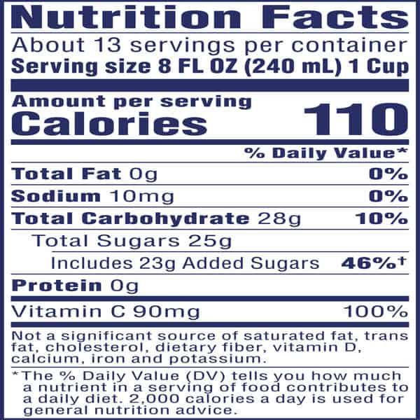 • 100% of your recommended daily value of vitamin C per 8 fl oz serving
