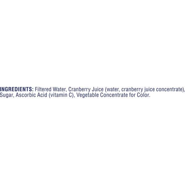 Filtered Water, Cranberry Juice (water, Cranberry Juice Concentrate), Sugar, Ascorbic Acid (vitamin C), Vegetable Concentrate For Color.