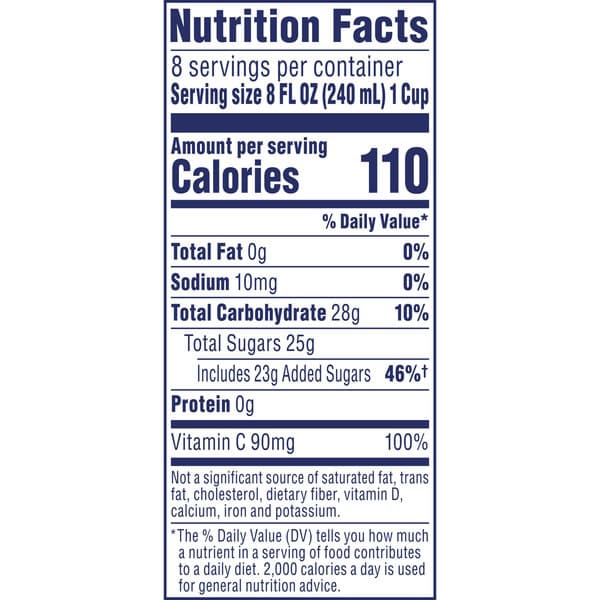 • 100% of your recommended daily value of vitamin C per 8 fl oz serving