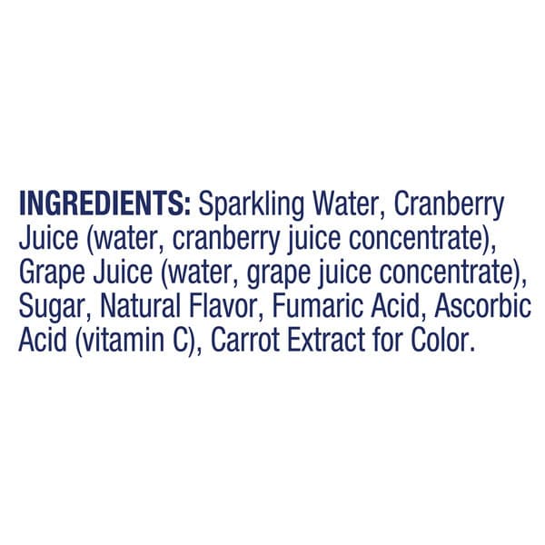 Sparkling Water, Cranberry Juice (water, Cranberry Juice Concentrate), Grape Juice (water, Grape Juice Concentrate), Sugar, Natural Flavor, Fumaric Acid, Ascorbic Acid (vitamin C), Carrot Extract For Color