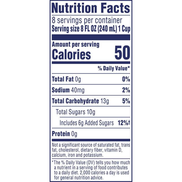 • Enjoy the crisp, refreshing taste of cranberries with just 50 calories and 10g of sugar in each 8 fl oz serving