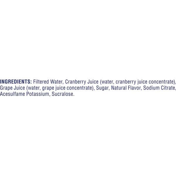 Filtered Water, Cranberry Juice (water, Cranberry Juice Concentrate), Grape Juice (water, Grape Juice Concentrate), Fructose, Sugar, Natural Flavor, Pectin, Sodium Citrate, Acesulfame Potassium, Sucralose