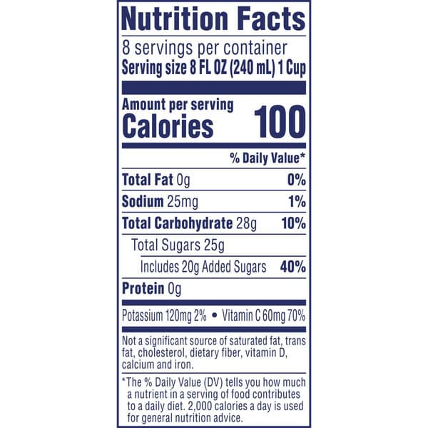 • 100% of your recommended daily value of vitamin C per serving with no high fructose corn syrup