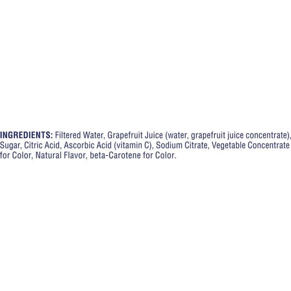 Filtered Water, Grapefruit Juice (water, Grapefruit Juice Concentrate), Sugar, Grapefruit Juice Pulp, Citric Acid, Natural Flavor, Vegetable Concentrate For Color, Sodium Citrate, Ascorbic Acid (vitamin C), Beta-carotene For Color.