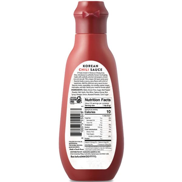 O’Food’s Gochujang Korean Chili Sauce is essential to Korean flavors. Umami-rich from fermentation, Gochujang is savory, spicy, sweet, and dynamic as a dipping sauce, marinade, or dressing. Use Gochujang Korean Chili Sauce to create authentic Korean dishes or to add a distinctly Korean flavor to your everyday favorites like chicken wings, pizza, or fries. Satisfy your need for Korean spice!