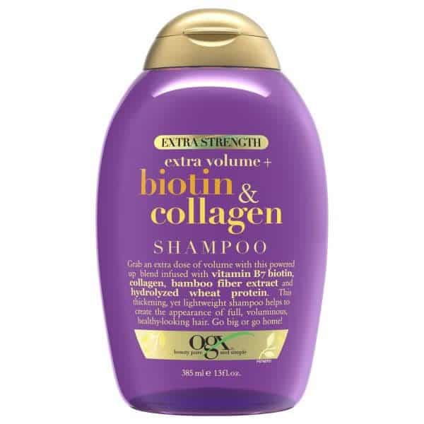 • Add body to fine strands with OGX Extra Strength Biotin & Collagen Shampoo