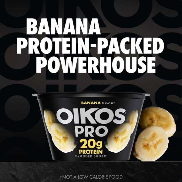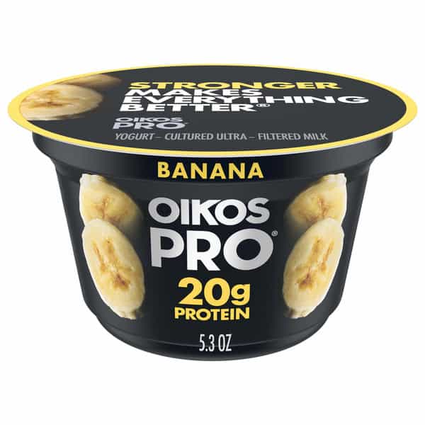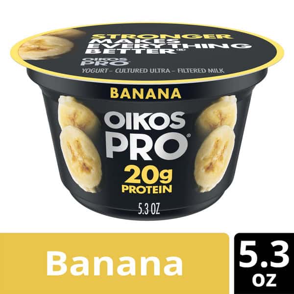 • STRONGER MAKES EVERYTHING BETTER: One 5.3 oz cup of Oikos Pro Banana Yogurt-Cultured Ultra-Filtered Milk Product