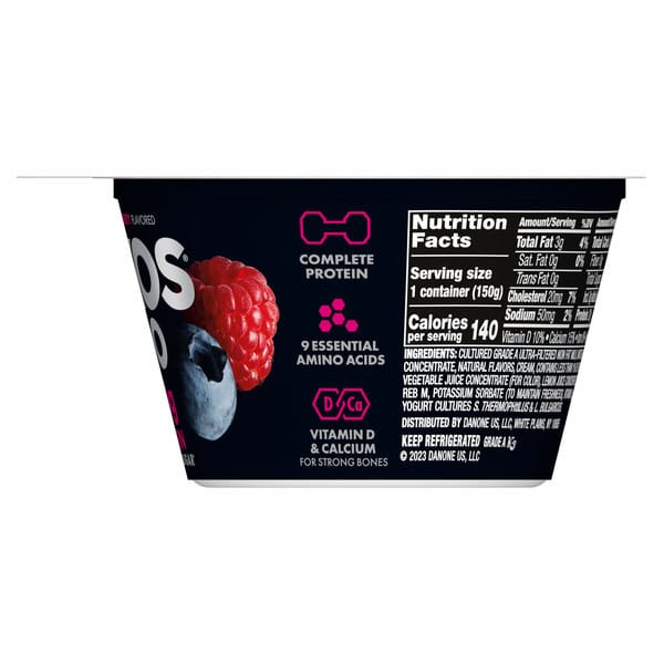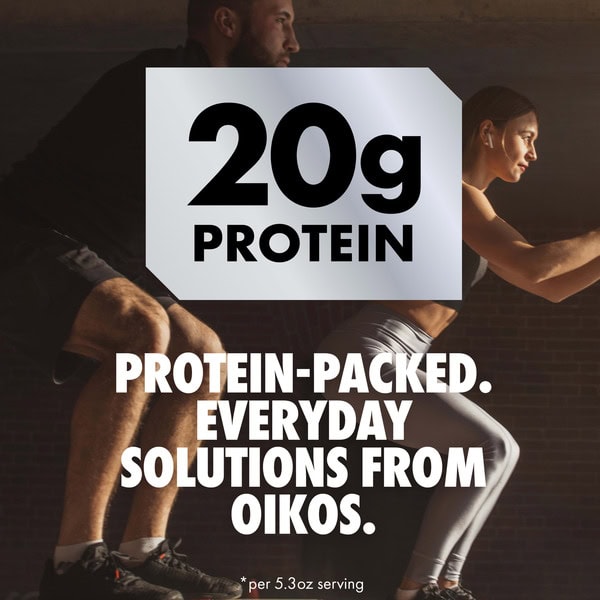Go Pro with Oikos Pro Mixed Berry Yogurt-Cultured Ultra-Filtered Milk Product, the spoonable high protein snack with more of what you want, and less of what you don’t. Every serving contains 0g added sugar* and nine essential amino acids, in addition to vitamin D and calcium for strong bones. Each Oikos Pro snack cup packs a punch with 20g of protein per serving, so you can always have dependable, high protein snacks to help you add more protein to your day. Because when you feel strong, you are unstoppable. With protein and deliciousness, these healthy snacks for adults can help you strive to reach your potential with every serving. Pack a mixed berry snack cup for days that start at a sprint and enjoy a delicious boost of protein at lunch. Each snack cup leaves room for toppings, so throw in your favorite fruit for an extra refreshing snack. Need 0g added sugar,* 0 artificial sweeteners, and 0% fat? Try Oikos Triple Zero with 15g of protein per serving. Want the creamy one with the fruit pieces? Oikos Blended has you covered. Oikos — Stronger Makes Everything Better (R). *Not a low-calorie food.