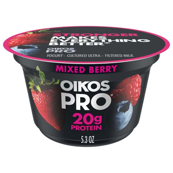 • STRONGER MAKES EVERYTHING BETTER: One 5.3 oz cup of Oikos Pro Mixed Berry Yogurt-Cultured Ultra-Filtered Milk Product