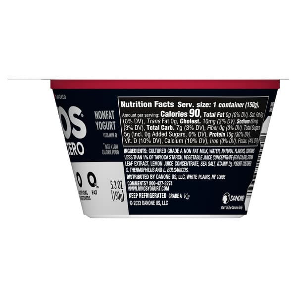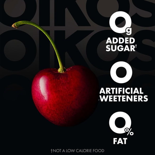 • STRONGER MAKES EVERYTHING BETTER: One 5.3 oz cup of Oikos Triple Zero Cherry Nonfat Greek Yogurt