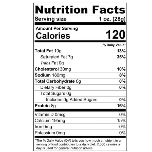 IngredientsPasteurized Milk, Salt, Cultures, Enzymes