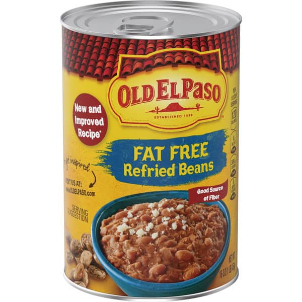Old El Paso Fat Free Refried Beans create a delicious base for any Mexican-style food or tasty side dish. Made with just the right amount of spices, these fat-free canned beans are ready to add to tacos, burritos, nachos or any Mexican dish. Simply heat them up in the microwave or on the stovetop and enjoy. Tonight, we taco!
