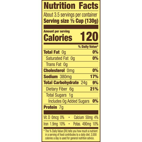 • Refried beans with six grams fiber per serving