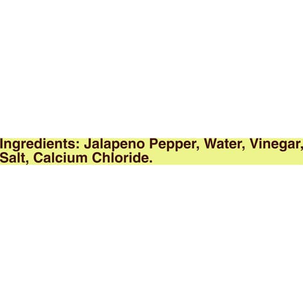 Jalapeno Pepper, Water, Vinegar, Salt, Calcium Chloride.