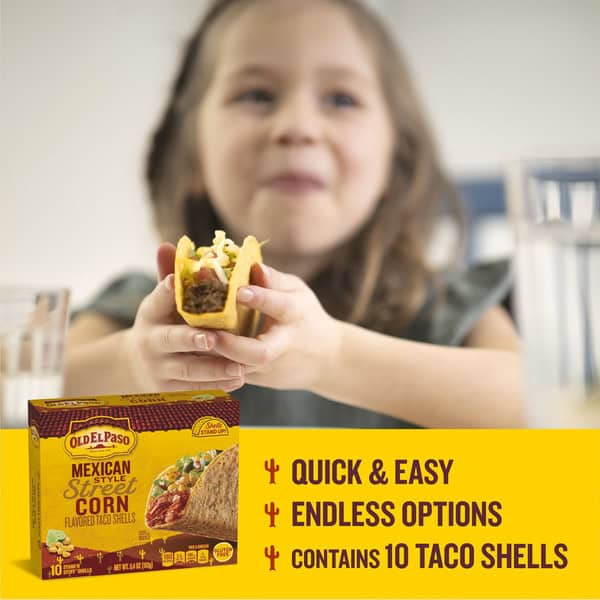 • CONTAINS: One 5.4 oz box of Old El Paso Mexican Style Street Corn Stand ‘N Stuff Taco Shells; 10 shells
