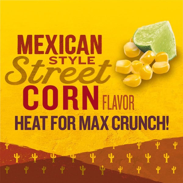 • FLAVOR FORWARD: Gluten free taco shells infused with Mexican inspired street corn flavors of corn, lime, cheese, and spices; For max crunch, heat in oven at 325 degrees Fahrenheit about 3 to 4 minutes or microwave on high about 20 to 30 seconds